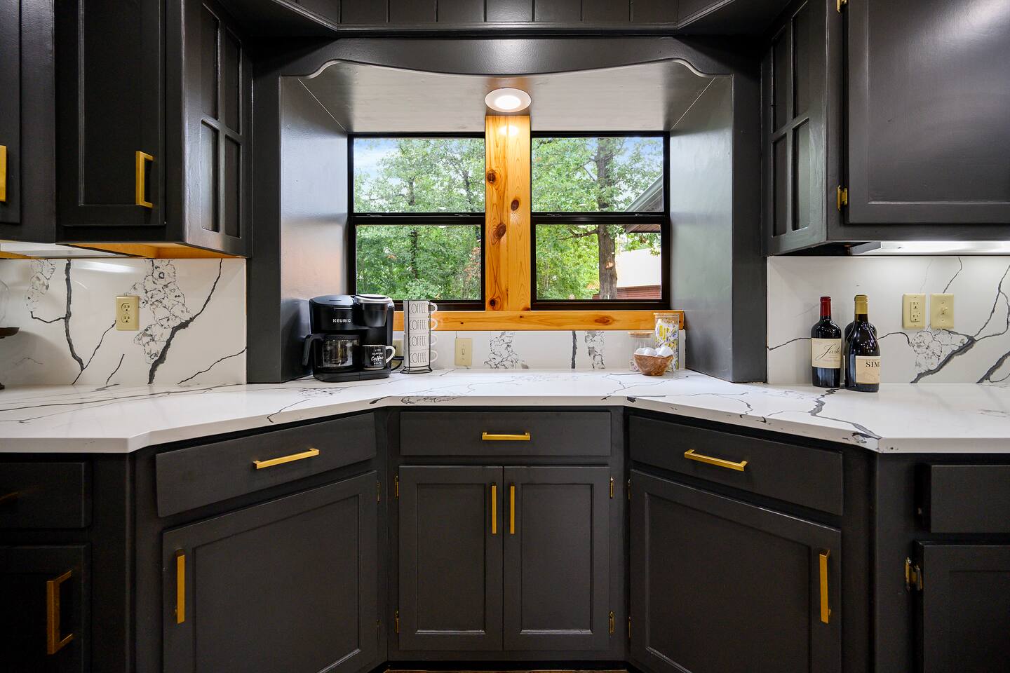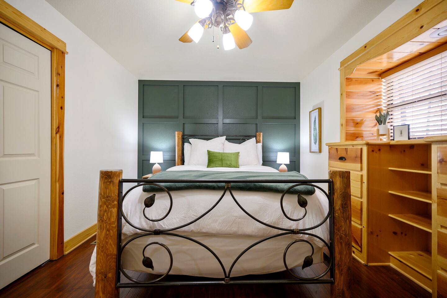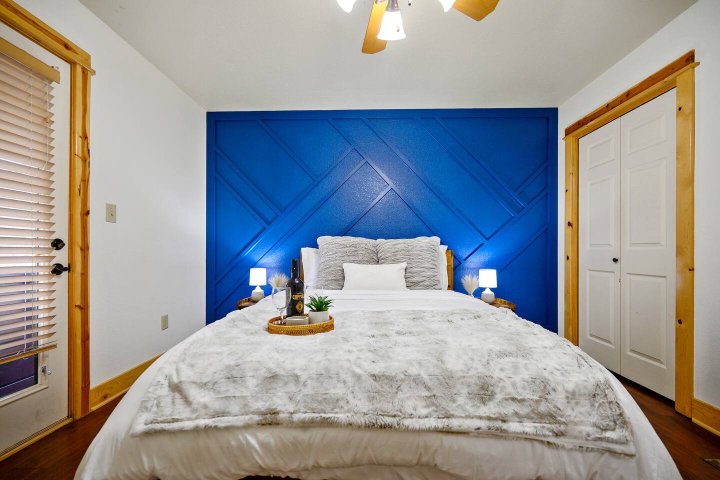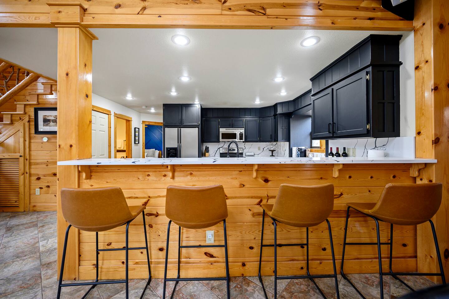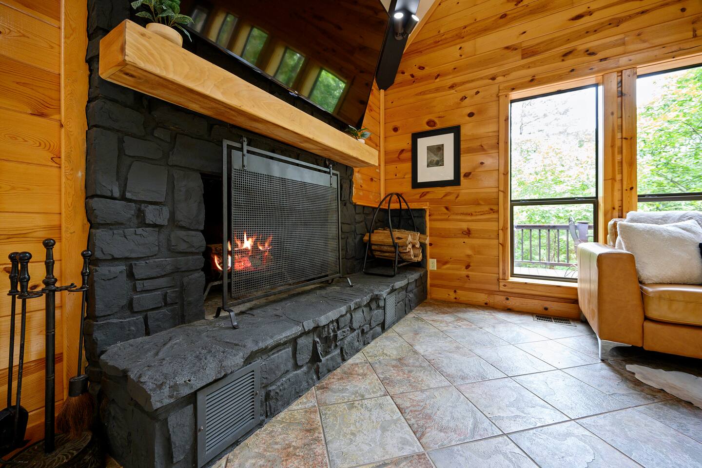 Relax with the whole family at this beautiful & peaceful cabin! This updated cabin offers 4 large rooms with 7 beds & 3 full bathrooms. 3 rooms that each have 1 queen bed & 1 room with 2 sets of full size bunk beds. Open living/dining/kitchen area is great for enjoying time together. The master has a private patio with sitting area. Off the living room you will find a huge second story deck with dining area & hot tub. On the lower level you find the fire pit, outdoor seating & horse shoe pit!