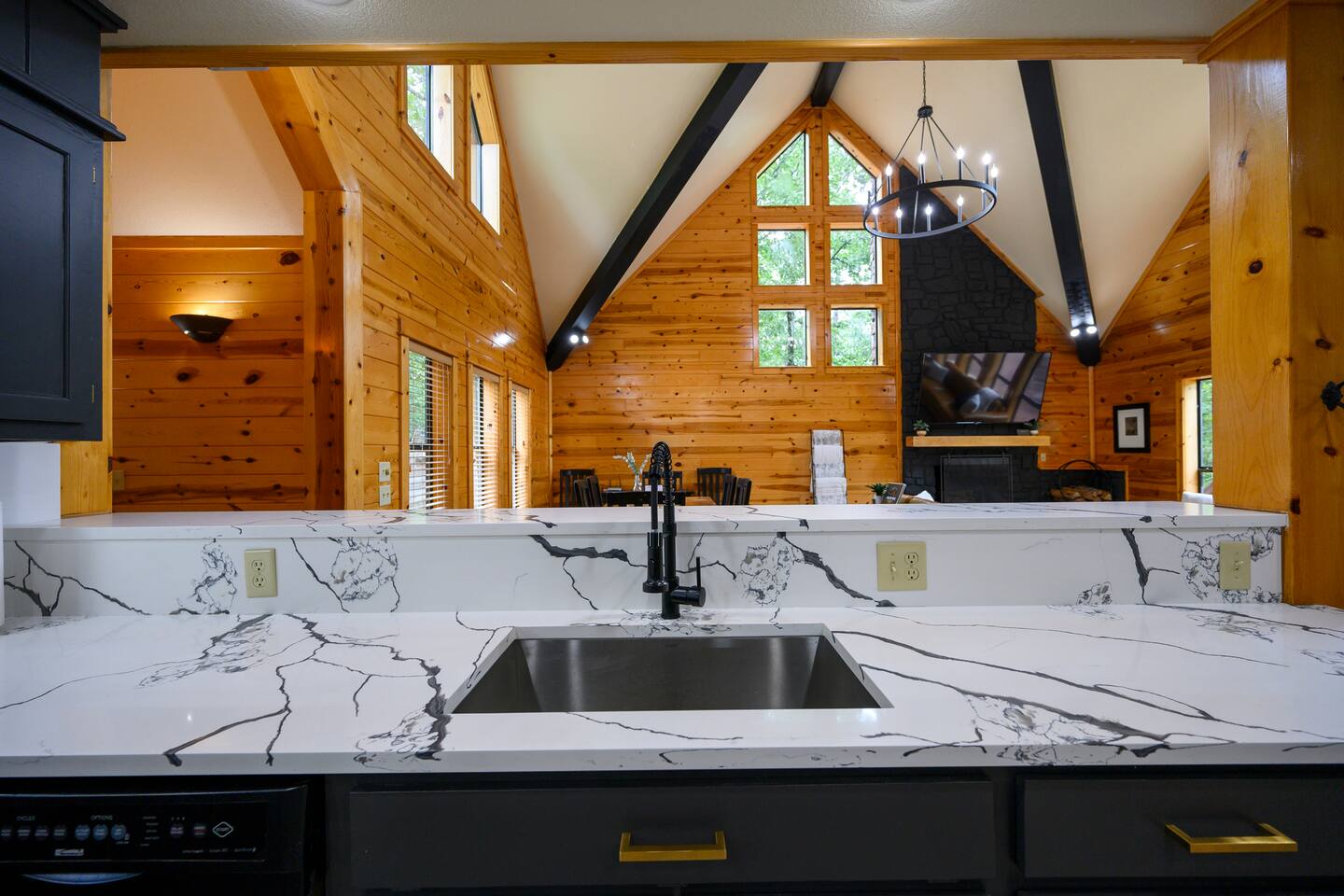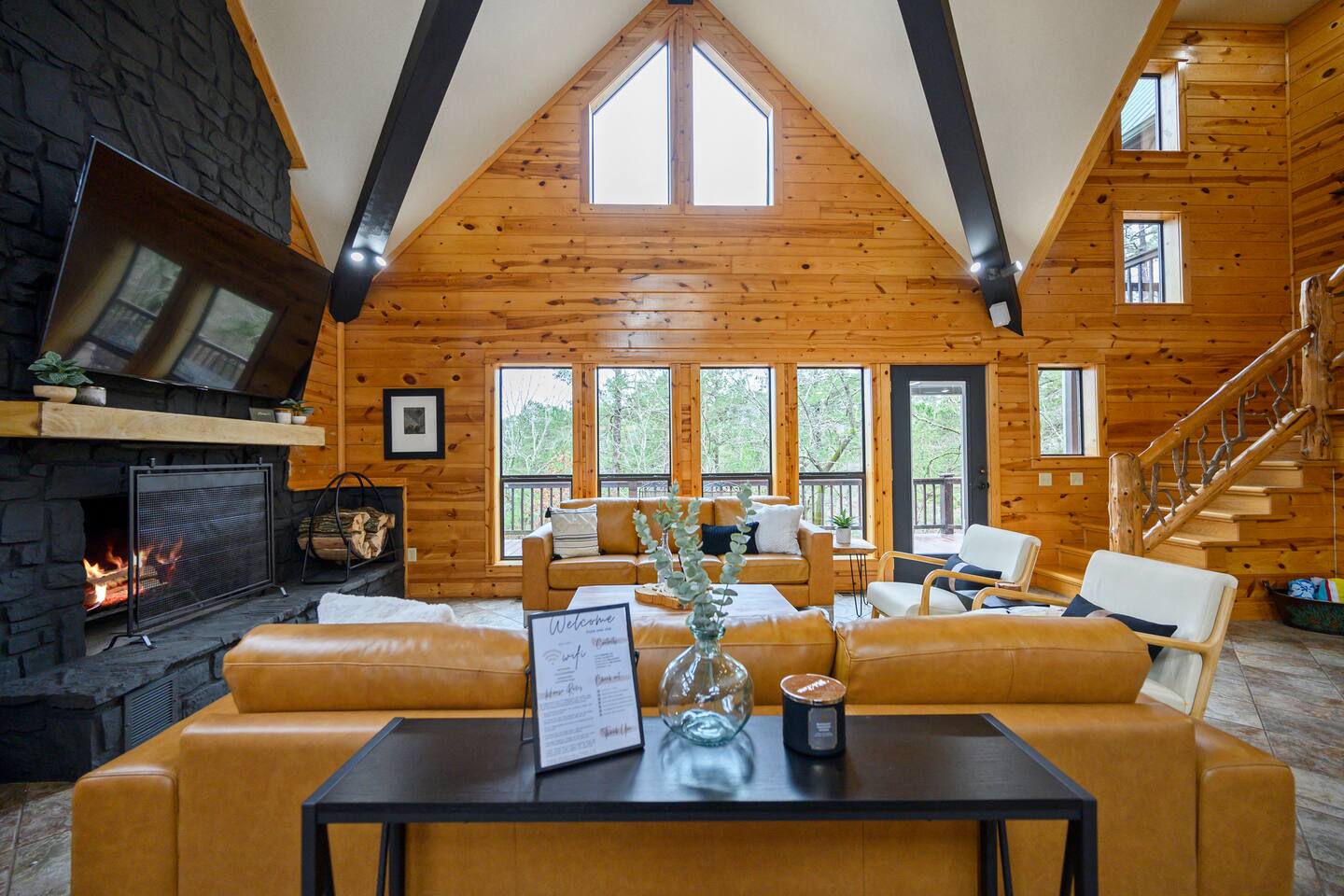 This cabin offers a large circle drive with plenty of parking and area to park a boat. There is a great shuttle service that offers round trip service to wherever you need to go in broken bow and Hochatown for $10 per person.